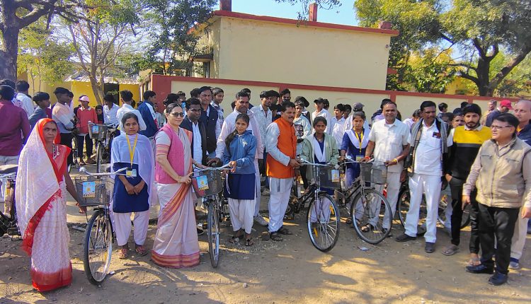 शासकीय हायर सेकंडरी स्कूल में पूर्व विधायक व प्रदेश मंत्री ने विद्यार्थियों को बांटी साइकिल