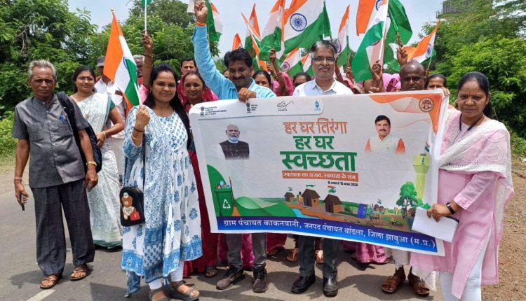 थांदला जनपद पंचायत अंतर्गत आने वाली ग्राम पंचायत काकनवानी में हर घर तिरंगा अभियान के साथ-साथ हर घर स्वच्छता अभियान भी शुरू किया गया है. आज सुबह से ही जनप्रतिनिधि अधिकारी कर्मचारी सार्वजनिक जगहों पर अभियान के पहले दिन प्रत्येक ग्राम पंचायत स्तर पर लॉन्च डे/अभियान की शुरुआत बेनर/पोस्टर हाथ मे तिरंगा लेकर ढोल ढमाके के साथ हाथों में तिरंगा लेकर रैली का आयोजन जगह जगह किया गया।