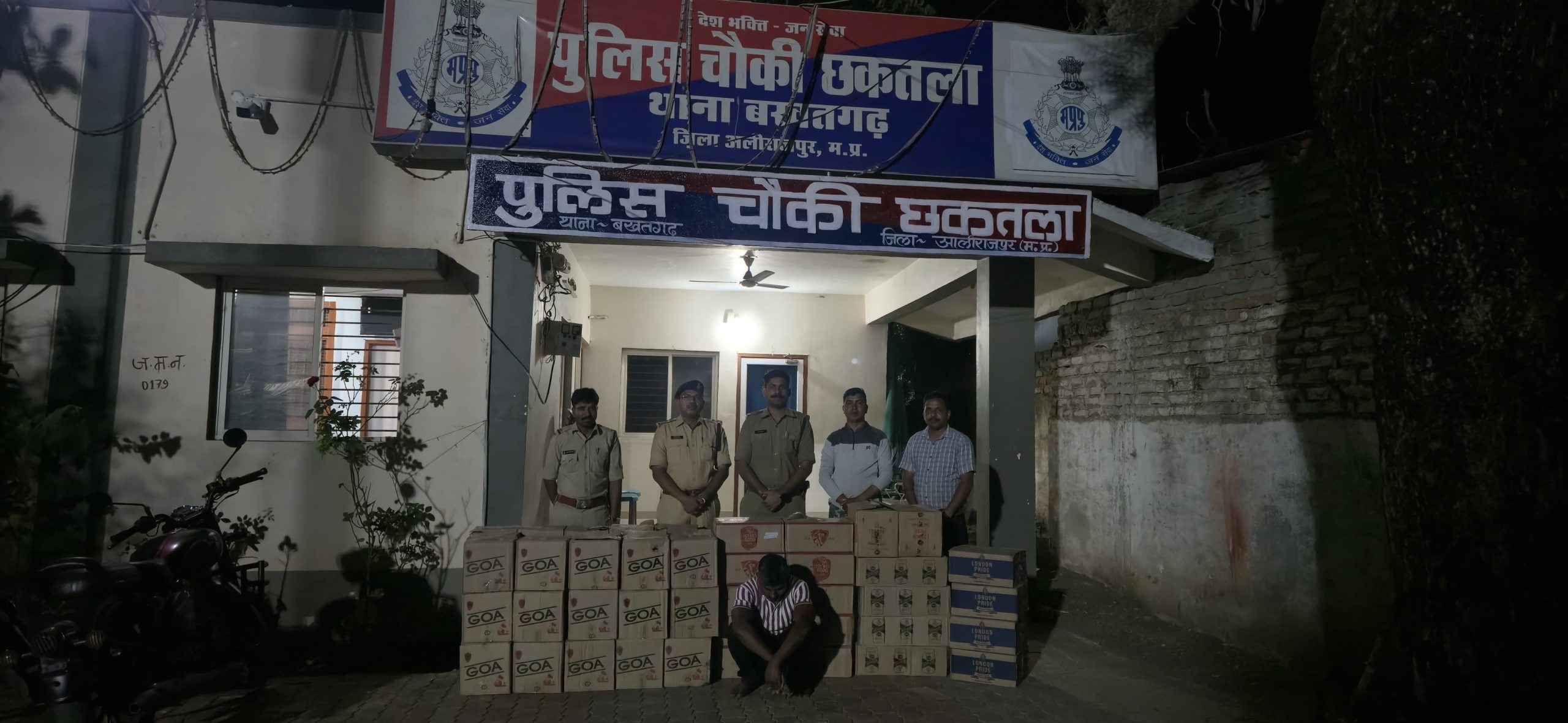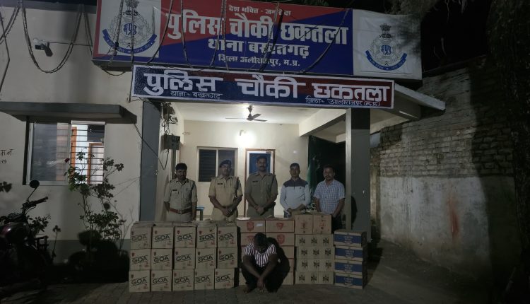 पुलिस अधीक्षक आलीराजपुर रघुवंशसिंह के मार्गदर्शन में जिले में अवैध शराब की गतिविधियों के विरुद्ध चलाए जा रहे विशेष अभियान के तहत, थाना बखतगढ चौकी छकतला पुलिस ने बड़ी कार्यवाही करते हुए बडी मात्रा में अवैध अंग्रेजी शराब जब्त करने में सफलता प्राप्त की है।