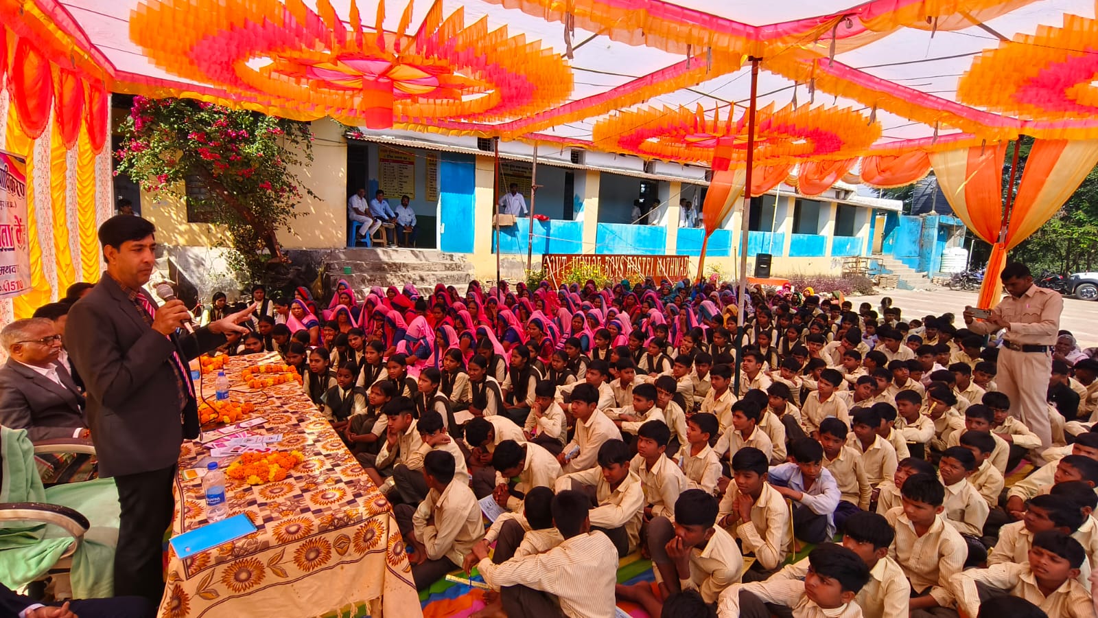 जिला विधिक सेवा प्राधिकरण जिला न्यायालय आलीराजपुर के जिला न्यायाधीश जय पाटीदार, जिला विधिक सहायता अधिकारी श्री दिलीप सिंह मुजाल्दा के सानिध्य में शिविर का आयोजन किया गया, जिसमें मथवाड़ क्षेत्र के आसपास के सभी गांवों के ग्रामीण व आंगनबाड़ी कार्यकर्ता, चौकीदार, सरपंच, जनप्रतिनिधि उपस्थित हुए। शिविर में उपस्थित ग्रामीणों को संबोधित करते हुए जिला विधिक सहायता अधिकारी श्री दिलीप सिंह मुजाल्दा ने कहा कि आलिराजपुर जिले में कानुन की जानकारी के बारे में पता नहीं होने के कारण बहुत से लोग कानून के हत्थे चढ़ जाते हैं, जिला विधिक सेवा प्राधिकरण में किसी भी प्रकार का अपराध हो,या कोई सी योजनाएं हो, सभी के बारे में नि: शुल्क परामर्श दिया जाता है।ओर कार्ट में चल रहे केस के लिए नि: शुल्क अधिवक्ता उसकी पैरवी करते हैं। लेकिन इसके लिए आपको सहायता लेने हेतु जिला विधिक सेवा प्राधिकरण कार्यालय आना होगा,या हमारे द्वारा नियुक्त किए गए वालिंटियर से संपर्क कर सकते हैं। उन्होंने बताया कि बाल विवाह अपराध है,उसी प्रकार अनेक शासन की योजनाओं से वंचित लोगों को योजना का लाभ कैसे ले, उसके बारे में सभी को बताया।