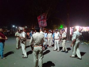 पुलिस ने कस्बे का पैदल भ्रमण कर गरबा पंडालों का लिया जायजा