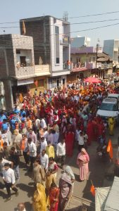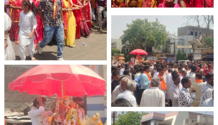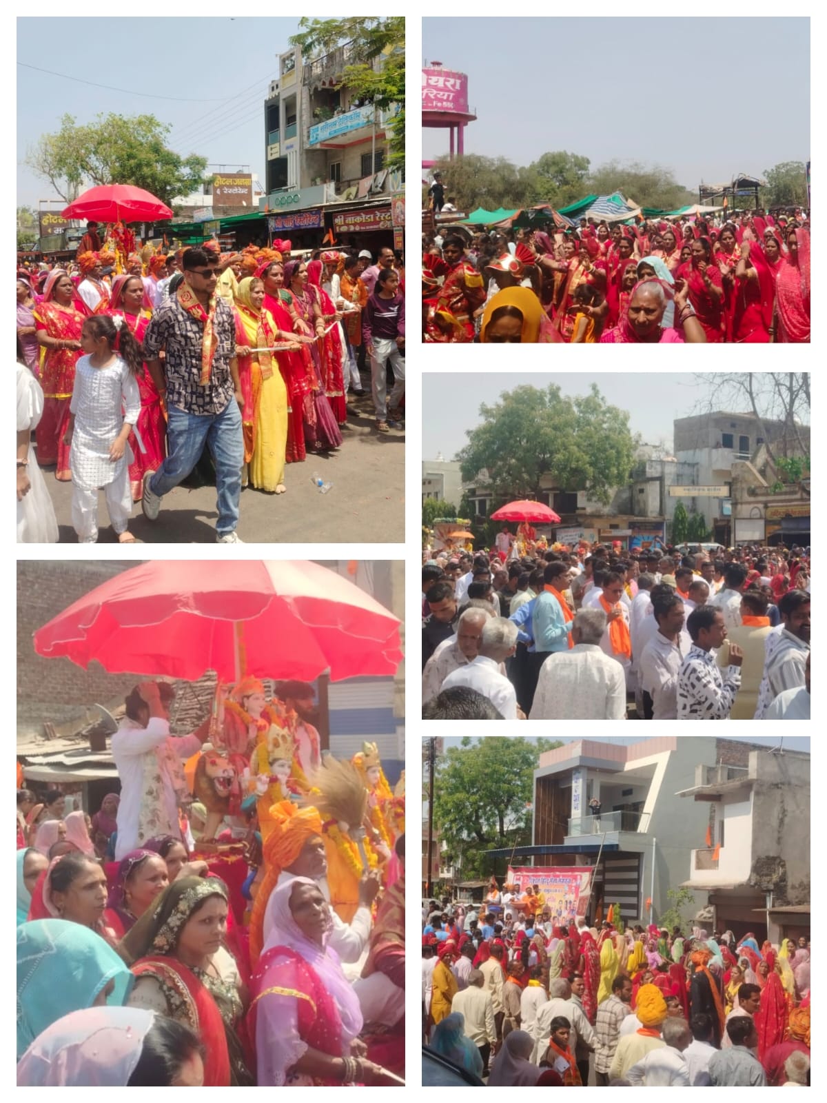 ग्राम में आयोजित हो रहे प्राण प्रतिष्ठा महोत्सव को लेकर बुधवार सुबह 9 बजे से मंदिर प्रांगण से शोभायात्रा की शुरुआत हुई बैंड बाजे बग्गी ढोल वाले तथा घोड़ी सवार चल रहे थे। गौरतलब हे 17 अप्रैल से प्राण प्रतिष्ठा महोत्सव को लेकर विभिन्न आयोजन हो रहे हे जिसमें आज बुधवार को मां अंबिका,श्री राम दरबार,राधा कृष्ण की मूर्ति का नगर भ्रमण हुआ जिसमें ग्राम के सर्वसमाज ने स्वागत अभिनंदन किया। कामधेनु गौशाला के पीठाधीश आचार्य देवेंद्र शास्त्री शोभायात्रा में आगवानी कर रहे थे।
