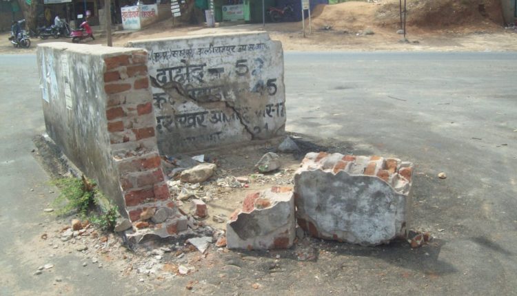 अज्ञात वाहन ने शहरों की दूरी वाला सीमेंट पिल्लर तोड़ा