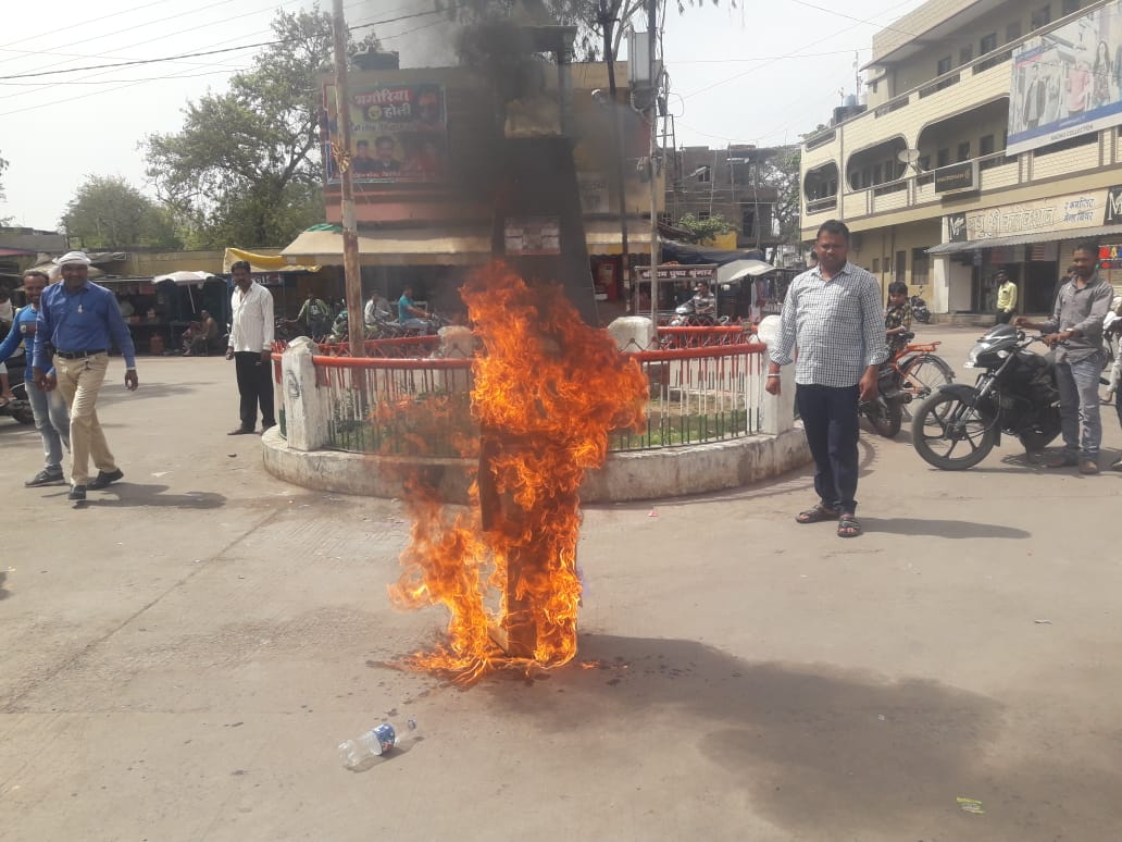 भाजपा से राज्यसभा उम्मीदवार डॉ. सुमेरसिंह सोलंकी का पुतला दहन कर आदिवासी समाज ने किया विरोध प्रदर्शन