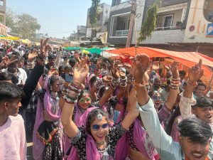 भगोरिया मेले में कांग्रेसी नेता महेश पटेल जिला कांग्रेस अध्यक्ष ओमप्रकाश राठौर, विधायक प्रतिनिधि अमानुल्ला पठान, महेंद्र सिंह रावत, सरपंच रमेश रावत, नारायण सिंह चौहान, मुस्तफा बोहरा, सिराज खां आदि अनेक कार्यकर्ताओं ने ठोल मांदल की थाप पर थिरकते हुए गैर निकाली।
