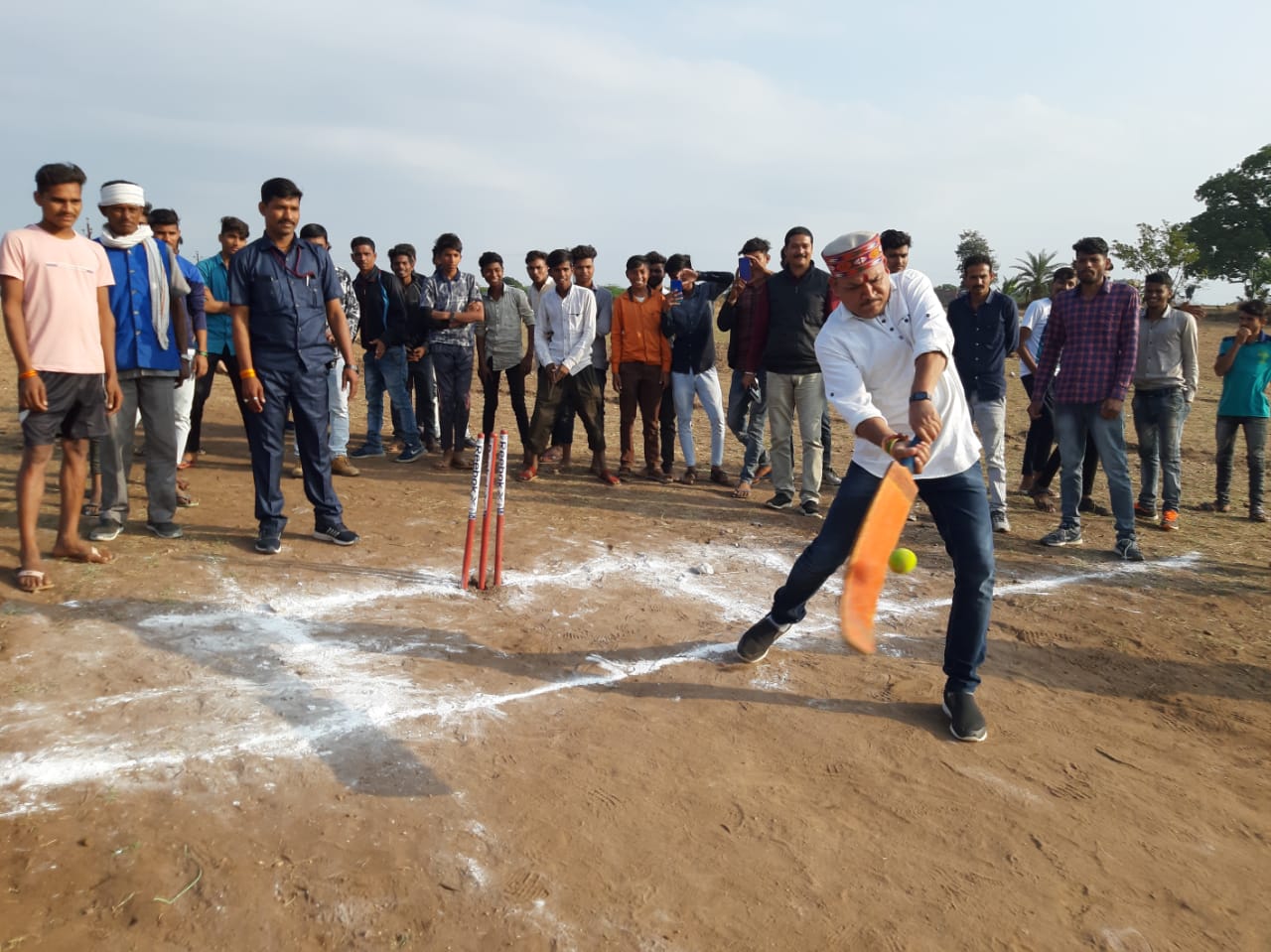 आलीराजपुर। उमराली रोड पर स्वामी विवेकानंद विद्यापीठ के पीछे आयोजित ओपन टेनिस बॉल क्रिकेट टूर्नामेंट के फायनल मुकाबले के पहले विधायक मुकेश पटेल पहुंचे। यहा उन्होने क्रिकेट टीम के खिलाडियों से परिचय प्राप्त किया। पश्चात खिलाडियों के अनुरोध पर क्रिकेट खेला और पहली ही बॉल पर चौका जड दिया तो खिलाडियों में उत्साह छा गया। इस दौरान विधायक पटेल ने कहा कि क्षेत्र में खेल गतिविधियों को बढावा देने के लिए शासन स्तर पर हरसंभव प्रयास किया जा रहा है। इस दौरान जिला कांग्रेस कार्यवाहक अध्यक्ष ओम राठौर, जितेंद्र देवडा, मगन बामनिया, प्रवीण रावत, जितेंद्र बामनिया, जागरसिंह सहित बडी संख्या में क्रिकेट प्रेमी मौजूद थे।