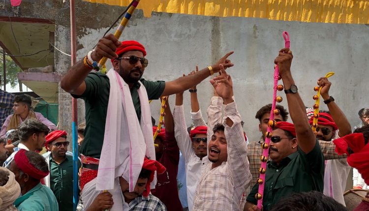आदिवासी सामाजिक कार्यकर्ता शंकर बामनिया अपने कार्यकर्ताओ के साथ चांदपुर भगोरिया हाट मे पहुचे ओर टंट्या मामा भील की प्रतिमा पर माल्यार्पण कर कार्यकर्ताओ के साथ करीब 20 ढोल मांदल बजाकर रंगारंग गैर निकाली शंकर बामनिया जी एवं उनकी टीम ने आदिवासी समाज के लोगो से आने वाले दिनो मे होने वाली शादी ब्याह को लेकर समाज के लोगो से अपील करते हुए कहा की सभी आदिवासी समाज के लोग डी 3 दहेज डीजे ओर दारू को लेकर जो मुहिम चल रही है उसको सभी को सफल बनाना है टंट्या मामा भील मित्र मंडल की ओर से समाज के लोगो से ये अपील करता हु की जो डी 3 की मुहीम चल रही है उसके सफल होने से आने वाले दिनो मे समाज मे बहुत कुछ परिवर्तन देखने को मिलेगा वही सभी आदिवासी समाज को भगोरिया होली ओर रंगपंचमी की शूभकामनाए ओर बधाई देते हुए शंकर बामनिया ने कहा की ये जो भगोरिया हाट का उत्सव है ये हमारे आदिवासी समाज का होली के सातमी दिन पहले आने वाला त्यौहारीया हाट है इसमे हम सभी आदिवासी समाज के लोग इस भगोरिया हाट मे आते है खरीदी करते है ढोल बजाते है नाचते है ओर उत्साह के साथ हम इस त्योहार को मनाते है वही आदिवासी सामाजिक कार्यकर्ता के चतरसिह मण्डलोई भी ढोल मांदल बजाकर भगोरिया हाट मे गैर मे शामिल हुए।
