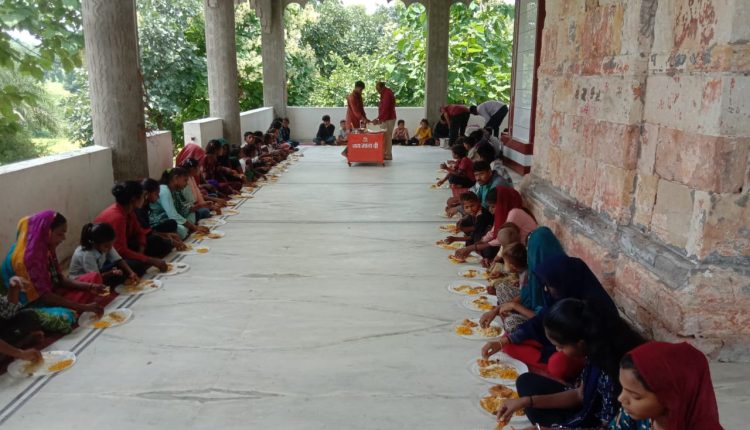 आलीराजपुर। रक्षाबंधन की पूर्णिमा पर प्रतिमाह अनुसार इस पूर्णिमा पर भी माता रानी का विशेष श्रृंगार पुजारी श्रवण के द्वारा किया गया श्रृंगार के पश्चात आरती उतारी गई और हलवे का प्रसाद वितरण किया गया। आज के श्रृंगार और प्रसादी वआरती का लाभ पटेल परिवार बोरखड ने लिया पश्चात भंडारे का आयोजन माता रानी के भक्त मंडल के सदस्यों के सहयोग से प्रति पूर्णिमा को किया जाता है। आज भी महारानी को भोग लगाकर आसपास के आदिवासी बाल गोपाल महिला पुरुषों व दर्शन करने आए सभी भक्तों नेभंडारे में पसादी का लाभ लिया भंडारे में राठौर मेहता भाटी पुजारी श्रवण गोविंद जोशीका विशेष योगदान रहा प्रसादी वितरण हेतु टाली चारभुजा स्टूडियो अलीराजपुर द्वारा भेंट की गई।