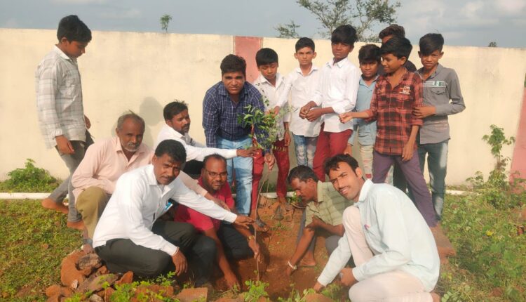 स्कूल परिसर में प्राचार्य व सरपंच ने किया पौधारोपण