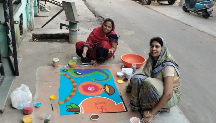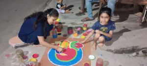 हिंदू सनातन धर्म में शुभ कार्यो के पूर्व घरों के बाहर तथा धर्म कार्य स्थल पर जो शुभ चिन्ह अंकित किए जाते हैं उनमें से चौक पूरना तथा विभिन्न रंगों के सामंजस्य से आकर्षक आक्रृतियों को केनवास या जमीन पर रंगोली बनाई जाती है, रंगोली विभिन्न प्रांतों में शुभ अवसरों पर बनाई जाती हैं, गुजरात तथा मध्य प्रदेश में दीपोत्सव के समय घरों में तथा आंगन में मन मोहक रंगोली बनाई जाती है,यह समय दीपोत्सव का है इसलिए माता लक्ष्मी जी को प्रसन्न करने हेतु घर आंगन में आकर्षक रंगोली महिलाओं द्वारा बनाई जा रही है,जो कि एक हफ्ते तक प्रतिदिन बनाई जाती रहेगी।