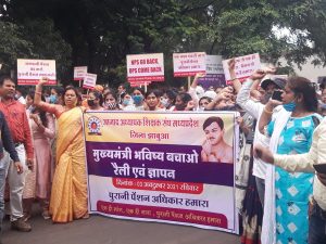 फिर से पुरानी पेंशन नीति की मांग को लेकर आजाद शिक्षक संघ ने रैली निकालकर सौपा ज्ञापन