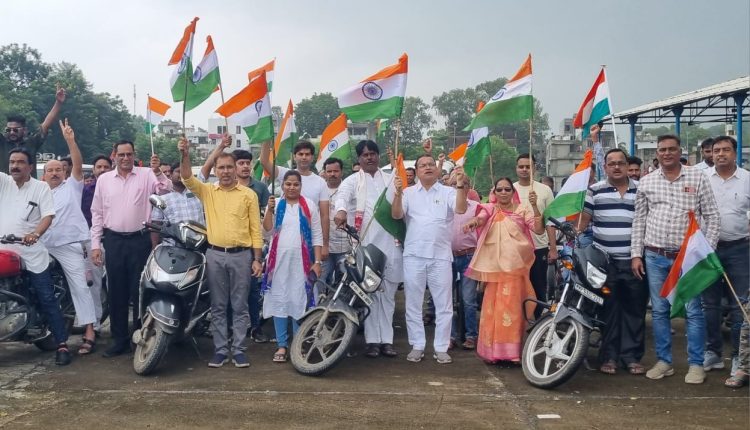 चशे आजाद नगर भाबरा की नगर पंचायत से तिरंगा यात्रा बाईक रेली से प्रारम्भ होकर मंडी प्रांगण में समापन हुआ जहां तेहसीलदार के द्वारा हर घर तिरंगा लगाने को लेकर शपथ दिलाई गई। आजाद नगर भाबरा मे तिरंगा यात्रा निकाली गई जिसमें प्रमुख रूप से भाजपा के जिलाध्यक्ष मकु पोरवाल व नितेश अग्रवाल जोबट विशेष रूप से बाईक रैली में शामिल हुए । जिसमें पूर्व विधायक माधवसिंह डावर , नगर पंचायत अध्यक्ष निर्मला डावर , जनपत अध्यक्ष इन्दरसिंह डावर भी बाईक रैली में शामिल हुए।
