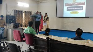 आज माॅ त्रिपुरा काॅलेज ऑफ नर्सिग में नव प्रवेशीत नर्सिग छात्र.छात्राओ का ओरिएंटेशन कार्यक्रम का आयोजन किया गया। डाॅ देवेन्द्र भायल कार्यक्रम में अतिथि के रूप में उपस्थित रहे भायल सर ने नर्सेस के कार्यो की सरहाना की एवं जब नवीन डॉक्टर्स की पद स्थापना होती तो सीनियर नर्सो से मार्गदर्शन लिया जाता हे की किसतरह से मरीजों को चिकित्सीय सेवा प्रदान की जाए | संस्था के चेयरमेन ओम शर्मा ने नव प्रवेशीत छात्र.छात्राओ को नर्सिग की महत्ता पर प्रकाश डाला। संस्था के प्राचार्य कपिल राठौर द्वारा संस्था की संपुर्ण जानकारी दी एंव संस्था के छात्र.छात्राओ एंव शिक्षकों के द्वारा कोरोना काल में किये गये कार्य की सरहाना की। संस्था के संचालक डॉक्टर विनोद मिश्रा ने नर्सिग व्यवसाय को सेवा कार्य भी बताया। एंव नव प्रवेशित छात्र छत्राओ में मीनाक्षी पांचाल ने बताया की में मेरे परिवार एवं समाज को चिकित्सा सेवा प्रदान करना चाहती हु इसलिए मेने नर्सिंग पाठ्यक्रम चुना, कविता भूरिया ने बतया की जब जब भी में गांव से झाबुआ आती थी तो दीवारों पर माँ त्रिपुरा कॉलेज का विज्ञापन दिखता था तभी से मेरा लक्ष्य था की नर्सिंग पाठ्यक्रम का अध्ययन इसी कॉलेज में करुँगी , यशोदा रावत ने बताया की नर्सिंग पाठ्यक्रम के लिए माँ त्रिपुरा कॉलेज सर्व सुविधा युक्त हे | कार्यक्रम के अंत में संस्था की संचलिका किरण शर्मा ने आभार व्यक्त किया और कार्यक्रम का संचालन स्मिता मेडम , अंजलि मेडम ने किया ने किया , कार्यक्रम में जाग्रती राठौर जगदिश डूक्के चंन्दां मेंडम सुनिता मेडम जरीना मेडम मिरून मेडम विनोद नायक मनोज सर आदि स्टाॅफ उपस्थित रहै।