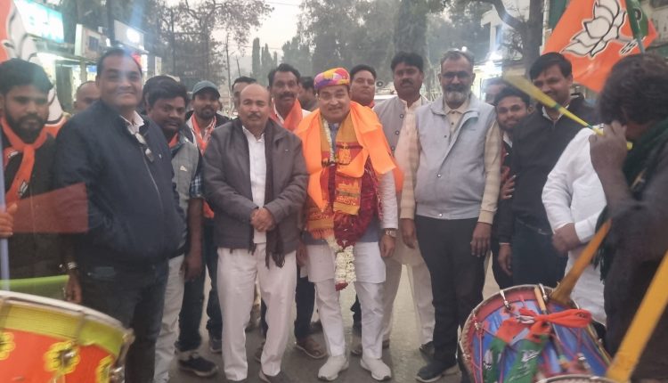 गुरुवार देर शाम परवाल आजाद नगर भाबरा पहुंचे। नगर पंचायत प्रांगण में भाजपा के कार्यकताओं ने ढोल मांदल की थाप पर पुष्पमाला से स्वागत कर बधाई दी। साथ ही नगर पंचायत व बस स्टैंड सहित पूरे नगर में जुलूस रैली निकालकर फटाके फोड कर आतिशबाज़ी की  गई । साथ ही नगर पंचायत बैठक हाल में कार्यकताओं के द्वारा स्वागत किया गया। इस अवसर पर परवाल ने कहा कि यह सब भाजपा के कार्यकताओं की मेहनत का नतिजा है जो मुझे फिर एक बार पाटीं ने भरोसा जताया है।