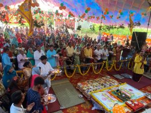 उक्त उद्गार आम्बुआ में सांवरिया धाम पर हो रही श्रीमद् भागवत कथा के पांचवे दिवस उन्हेल (उज्जैन) से पधारे कथा प्रवक्ता विद्वान पंडित श्री शिव गुरु शर्मा ने अपनी रस मयी वाणी से व्यक्त करते हुए आगे आज भगवान श्री कृष्ण की बाल लीलाओं का वर्णन किया ब्रज में जैसे ही पता चला कि नंद बाबा के यहां लाला ने जन्म लिया है सारा ब्रजमंडल उनके महल पर बधाई देने पहुंचने लगा यहां पर कृष्ण जन्मोत्सव लगभग छः माह तक दिन-रात चलता रहा जिसमें यशोदा माता ने मनचाहा उपहार हाथी, घोड़े, हीरे मोती और ना जाने कितना उपहार बांट दिया कृष्ण भगवान के अवतरण की खबर जैसे ही भगवान शिव को मिली वह नंद बाबा के महल जा पहुंचे जहां पर मां यशोदा उनका रूप देखकर कृष्ण के दर्शन कराने से मना कर दिया तब भगवान शिव गांव के बाहर हट करके बैठ गए इधर श्रीकृष्ण ने रोना चालू कर दिया लोगों के समझाने पर मां यशोदा भगवान शंकर को मना कर लाई तथा लाला का दर्शन शिवजी को कराया।