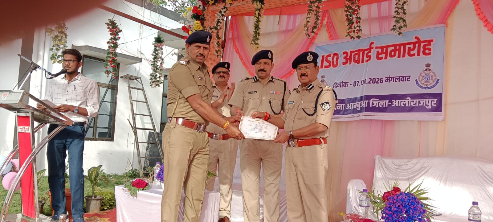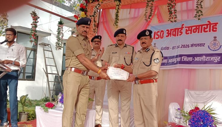 पुलिस उपमहानिरीक्षक (ग्रामीण) द्बारा आलीराजपुर जिले सहित जिले के आम्बुआ पुलिस थाने को उत्कृष्ट कार्य करने हेतु आई.एस.ओ प्रमाण पत्र देकर सम्मानित किया गया।