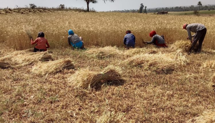 बदलते मौसम के कारण भयभीत कृषक पकी फसलें समेटने में जुटे
