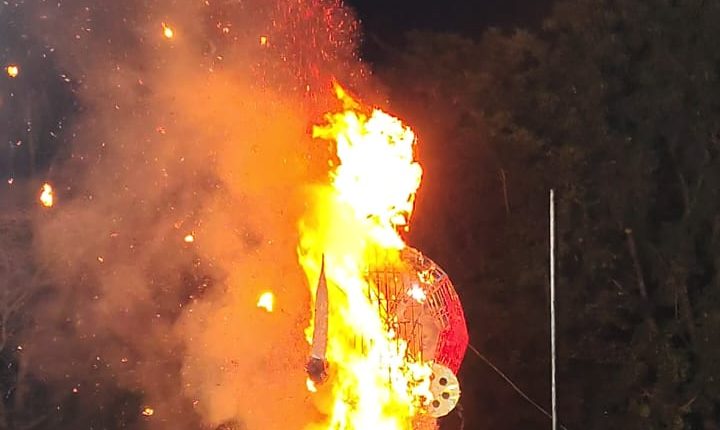 भगवान श्री राम द्वारा बुराई के प्रतीक जिसने माता सीता का हरण किया था उस राक्षस राज रावण का वध किया गया था उसी याद को आज भी ताजा रखे जाने हेतु दशहरे के अवसर पर रावण के पुतले का दहन आज आम्बुआ में भी किया गया।
