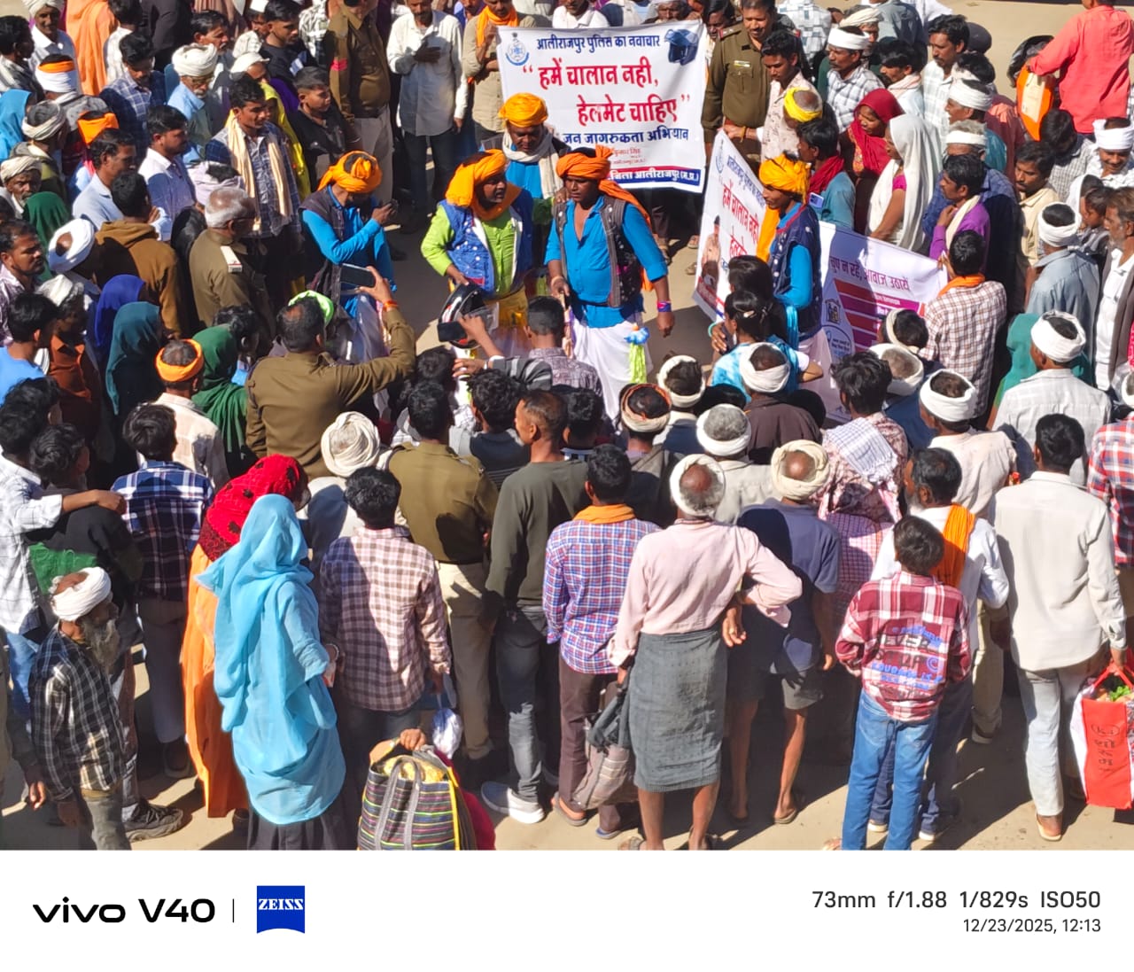 जिला पुलिस अधीक्षक श्री रघुवंश सिंह भदौरिया के निर्देशानुसार संपूर्ण जिले के साथ साथ पुलिस थाना क्षेत्रों में सड़क दुघर्टना रोकने हेतु विभिन्न कार्यक्रम आयोजित किए जा रहे हैं,उसी कड़ी में आज दिनांक 23 दिसंबर को आम्बुआ हाट बाजार में थाना प्रभारी मोहन सिंह डावर के मार्ग दर्शन में बस स्टैंड पर नुक्कड़ नाटक के कलाकारों के माध्यम से जनमानस को यातायात संबंधी जानकारियां दी गई , जिसमें दोपहिया वाहन चालकों को हैलमैट पहनने तथा चारपहिया वाहन चालकों को सीटबेल्ट बांधने, तथा शासन की मंशानुसार सड़क दुघर्टना में घायल को अस्पताल पहुंचाने वालों के लिए सुरु की गई राहवीर योजना जिसमें 25000 हजार नगद एवं प्रमाण पत्र दिए जाने संबंधी जानकारियां नुक्कड़ नाटक में दी गई, चालान नहीं हेलमेट चाहिए अभियान के भी आम जन को समझाइश दी जा कर हेलमेट के उपयोग के लिए प्रेरित किया गया, कार्यक्रम में विभिन्न प्रकार के बेनर पोस्टरों का प्रदर्शन किया गया,हाट बाजार में आए ग्रामीणों आदि नुक्कड़ नाटक के माध्यम से यातायात संबंधी जानकारियां प्राप्त की पुलिस विभाग द्वारा आयोजित इस कार्यक्रम की सभी ने मुक्तकंठ से प्रशंसा की । थाना प्रभारी मोहन सिंह डावर के साथ पुलिस महकमे के ए एस आई देवीसिंह नायक,विजय वर्मा ,प्र.आ भूरसिंह, आर मनोज,आर राजू कालिया आर दिनेश, तथा वरिष्ठ पत्रकार जगराम विश्वकर्मा आदि उपस्थित रहे।