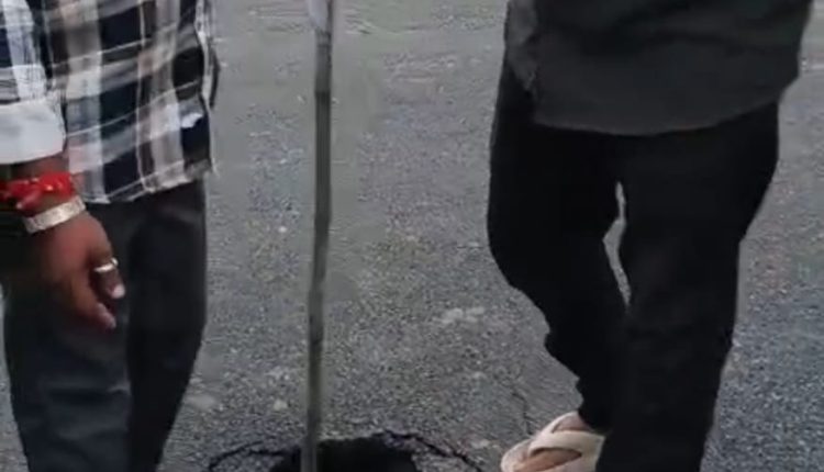 सड़क किनारे हुआ गहरा गड्ढा, दुर्घटना का भय