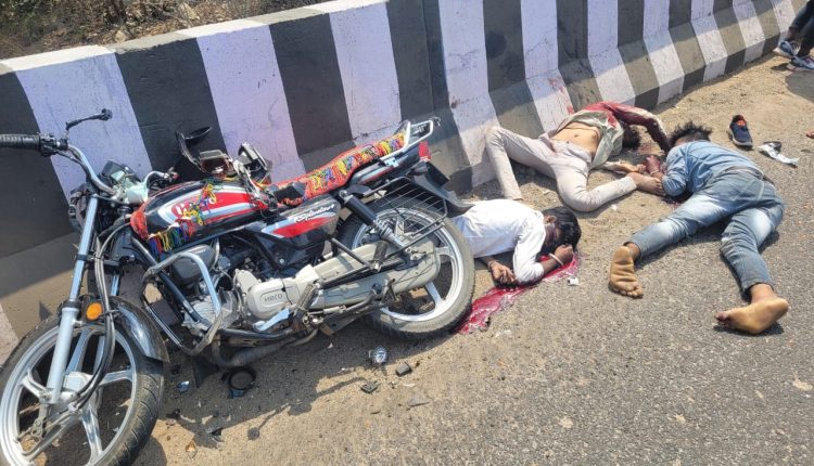 डंपर की टक्कर से बाइक सवार तीन युवकों की दर्दनाक मौत