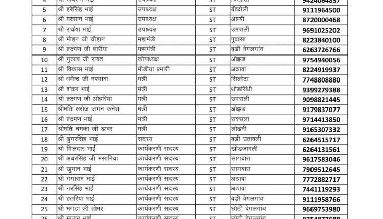 उमराली मंडल की कार्य समिति घोषित, पढ़िए किसे क्या पद मिला