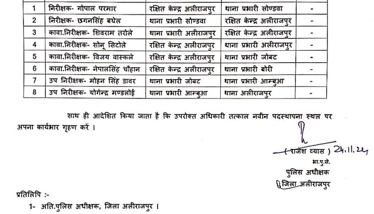 एसपी ने थाना प्रभारियों को किया इधर से उधर, सोनू सिटोले आलीराजपुर थाना प्रभारी बनाई गई