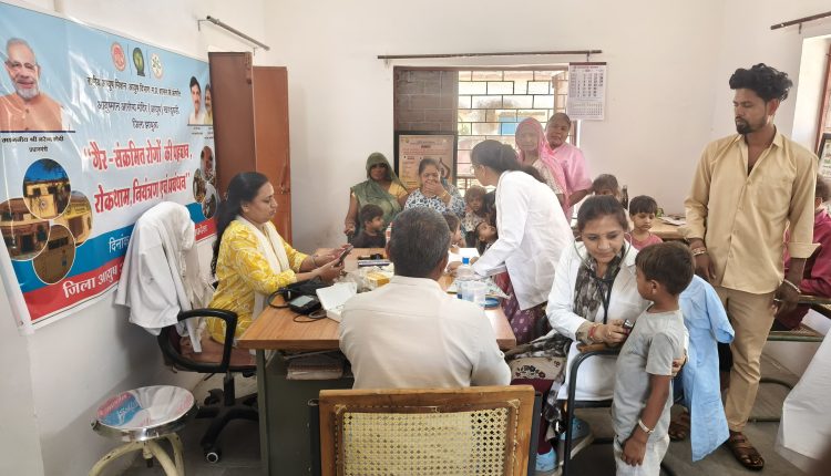 आयुष्मान आरोग्य शिविर में 76 रोगियों का स्वास्थ्य परीक्षण कर दवाई दी गई
