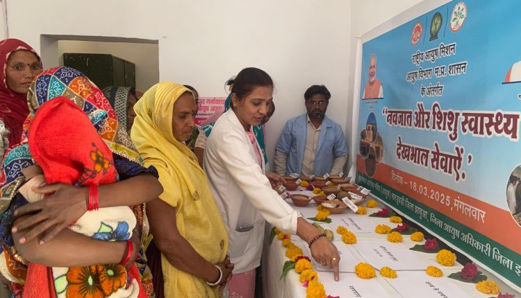 नवजात और शिशु स्वास्थ्य  देखभाल सेवाएं की थीम पर आयुष्मान आरोग्य शिविर लगाया