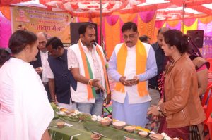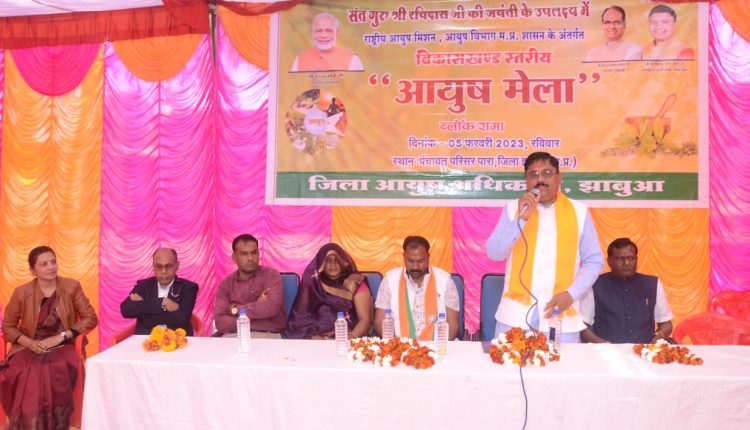 पारा। नगर के ग्राम पंचायत परिसर में संत रविदास जयंती के अवसर पर पहली बार आयुष मेला लगाया गया। जिला आयुष अधिकारी प्रमिला चौहान के मार्गदर्शन में लगे मेले का शुभारंभ सरपंच इंदुबाला डामोर, वरिष्ठ पत्रकार अमृतलाल जैन, पूर्व सरपंच ओंकार डामोर, उमेश सेतन, रातिमाली सरपंच गोपाल खराड़ी, अबरार खान आदि अतिथियों द्वारा भगवान धन्वंतरि एवं संत रविदास के चित्र के सम्मुख दीप प्रज्ज्वलन तथा माल्यार्पण कर किया गया। आयोजन में मुख्य अतिथि के रूप में भाजपा जिलाध्यक्ष भानु भूरिया, सोमसिंह सोलंकी तथा वालसिंह मसानिया उपस्थित थे। नॉडल अधिकारी डॉ पार्वती डोडवा ने बताया कि नगर में पहली बार लगे इस आयुष शिविर में ब्लड प्रेशर, सिकल सेल एनीमिया तथा रक्त की जांच के साथ अन्य कई बीमारियों के उपचार के साथ निःशुल्क दवाइयां तथा काढा वितरित किया गया। डॉ पार्वती ने स्वर्ण प्राशन, वातरोग, स्त्री रोग, बाल रोग, पंचकर्म तथा काढ़े के बारे में विस्तार से बताया। आयुष मेले में ओषधियों तथा पोषण वाटिका की प्रदर्शनी के माध्यम से कई जानकारियां दी गई। साथ ही मरीजों के मोबाइल में 75 लोगों को आयुष क्योर एप भी डाउनलोड करवाया गया।