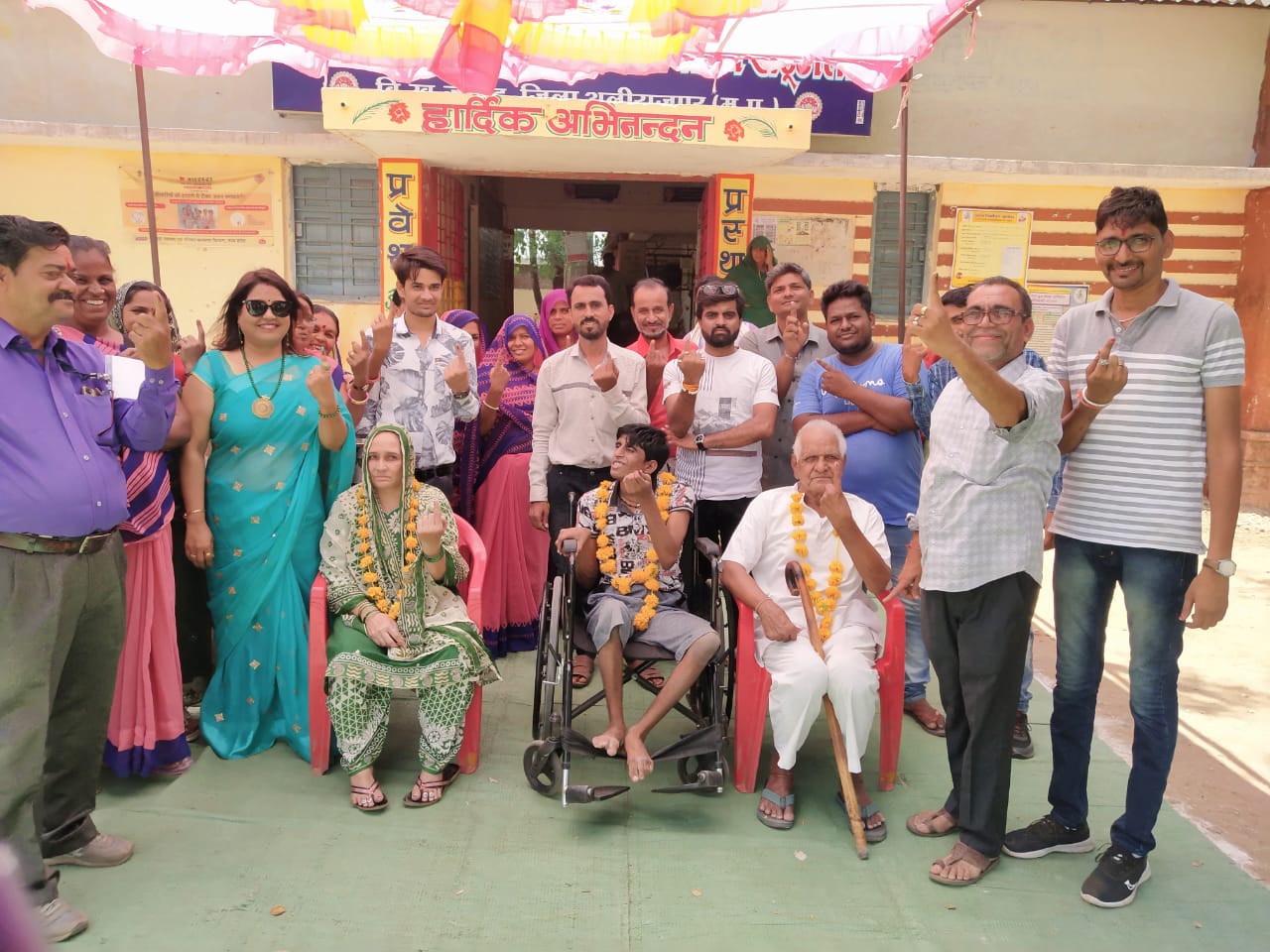 ग्राम में 74% मतदान हुआ दूल्हा दुल्हन ने भी अपने मत का प्रयोग किया