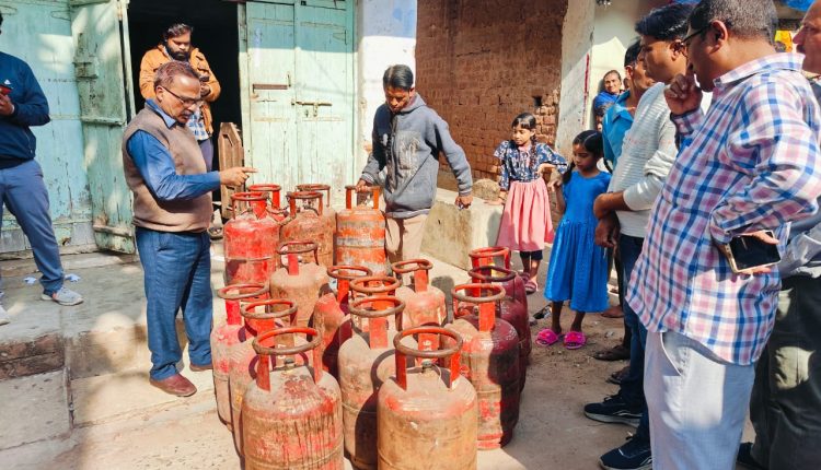 घरेलु गैस सिलेंडर के 13 नग खाली एवं 3 नग भरे जब्त किए