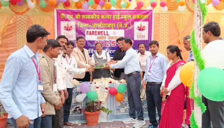 पीएम श्री शासकीय कन्या हाई स्कूल छकतला में कक्षा 10वीं की छात्राओं का विदाई समारोह एवं केरियर काउन्सलिंग का शानदार आयोजन किया गया। केरियर काउन्सलिंग के लिए शासकीय महाविद्यालय आलीराजपुर से सम्मानिय डाॅ. सुरजीत सिंह जाट, डाॅ.प्रदीप कनेश एवं सेवा निवृत्त प्राचार्य श्री बहादुर सिंह रावत की उपस्थिति में उक्त आयोजन किया गया।