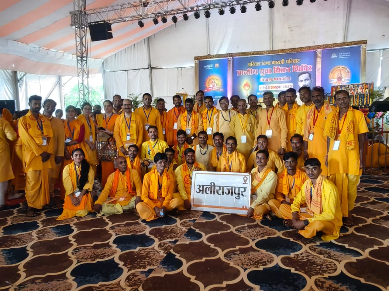 अखिल विश्व गायत्री परिवार द्वारा प्रांतीय युवा चिंतन शिविर का आयोजन भोपाल में 27 से 29 अक्टूबर तक किया जा रहा है। शिविर का शुभारंभ देव संस्कृति विश्वविद्यालय शांति कुंज हरिद्वार के प्रतिकुलपति डॉ. चिन्मय पंड्या, मुख्यमंत्री डॉ. मोहन यादव, दुर्गा दास उईके (केंद्रीय अनुसूचित जन जाति मंत्री) के आतिथ्य में संपन्न हुआ। जिसमें आलीराजपुर जिले से गायत्री परिवार जिला समन्वयक संतोष वर्मा, युवा संयोजक देवेंद्र सिंह भयड़िया तथा जिले की तहसील से 45 युवा भाई बहन और 16 स्वयं सेवकों (समयदानियो) ने सहभागिता की। युवा संयोजक देवेंद्र सिंह भयड़िया ने आलीराजपुर जिले की प्रगति रिपोर्ट प्रस्तुत की। यह जानकारी सोंडवा तहसील सह समन्वयक इंग्लेश तोमर ने दी।