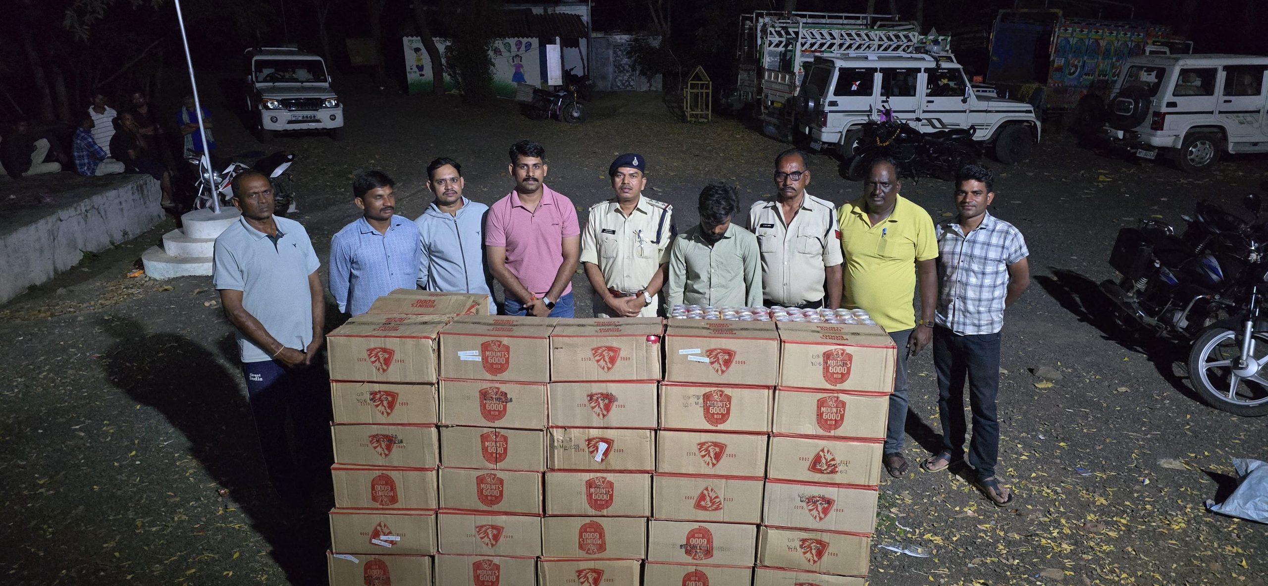 दिनांक 23 अक्टूबर 2025 को रात्रि लगभग 1.00 बजे थाना उदयगढ़ पुलिस द्वारा क्षेत्र में गश्त के दौरान अखोली फाटा (भाबरा–उदयगढ़ रोड) पर एक बोलेरो पिकअप वाहन क्रमांक MP.43.G.2611 को रोका गया। वाहन की तलाशी लेने पर उसमें माउण्ट 6000 सुपर स्ट्रॉंग बीयर की 160 पेटियां पाई गईं। प्रत्येक पेटी में 24 केन (500 एम.एल. प्रत्येक) होने से कुल शराब की मात्रा 1920 लीटर और कीमत ₹3,84,000 आंकी गई।