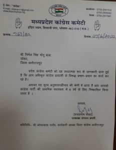 जोबट क्षेत्र में आगामी 01 जुलाई को त्रिस्तरीय पंचायत चुनाव होने के ठीक इसके पहले मध्यप्रदेश कांग्रेस कमेटी द्वारा जिला पंचायत वार्ड 07 में पार्टी गाईडलाईन के विद्धध अनिता गाडरिया के चुनाव लडने के चलते आज पार्टी ने एक पत्र के माध्यम से कांग्रेसी नेता निर्मलसिंह (मोनू) व महिला कांग्रेस प्रदेश सचिव अनिता गाडरिया को 6 साल के लिये पार्टी से निष्कासित कर दिया है