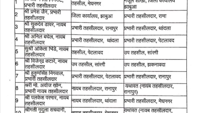 झाबुआ में कलेक्टर ने की प्रशासनिक सर्जरी – इन जगहों के बदले गए तहसीलदार / नायब तहसीलदार .. देखिए सूची