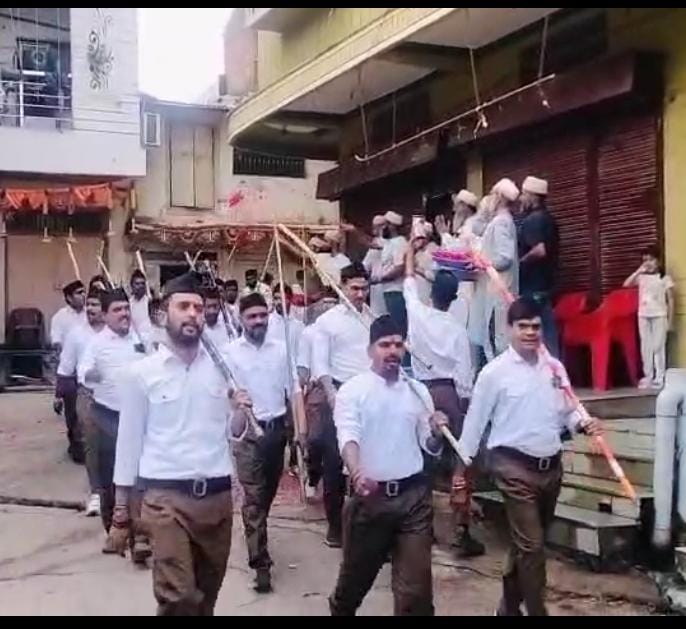 नानपुर में निकला विशाल पथ संचलन, सैकड़ों स्वयं सेवकों ने लिया भाग