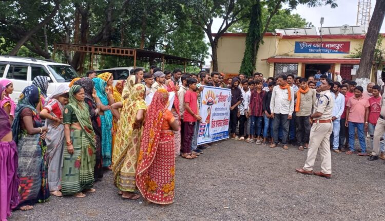 पुलिस अधीक्षक राजेश व्यास के निर्देश पर आज थाना नानपुर पर पुलिस मुख्यालय भोपाल द्वारा चलाये जा रहे अभिमन्यु अभियान के अंतर्गत जागरूकता कार्यक्रम रखा गया। थाना प्रभारी  नेपाल सिंह  द्वारा महिलाओं और पुरुष को नानपुर थाना प्रांगण में एकत्रित किया गया। इसके बाद महिला सुरक्षा को लेकर संवेदनशील रहने की बात पुरुषों से कही।  महिलाओं को बराबरी का हक अधिकार देने, पीड़ित महिला को हर समय हर जगह सुरक्षा प्रदान करने संबंधी शपथ दिलाई गई है। कार्यक्रम के दौरान नानपुर के आस पास के ग्राम पंचायत के सरपंच व ग्रामीणों को अभियान के बारे में अवगत अवगत कराकर शपथ दिलाई गई।