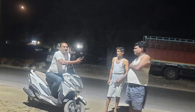 स्ट्रीट लाइट बंद होने से अंधेरे का फायदा उठाकर ट्रक में से अनाज के कट्‌टे चोरी कर रहे चोर