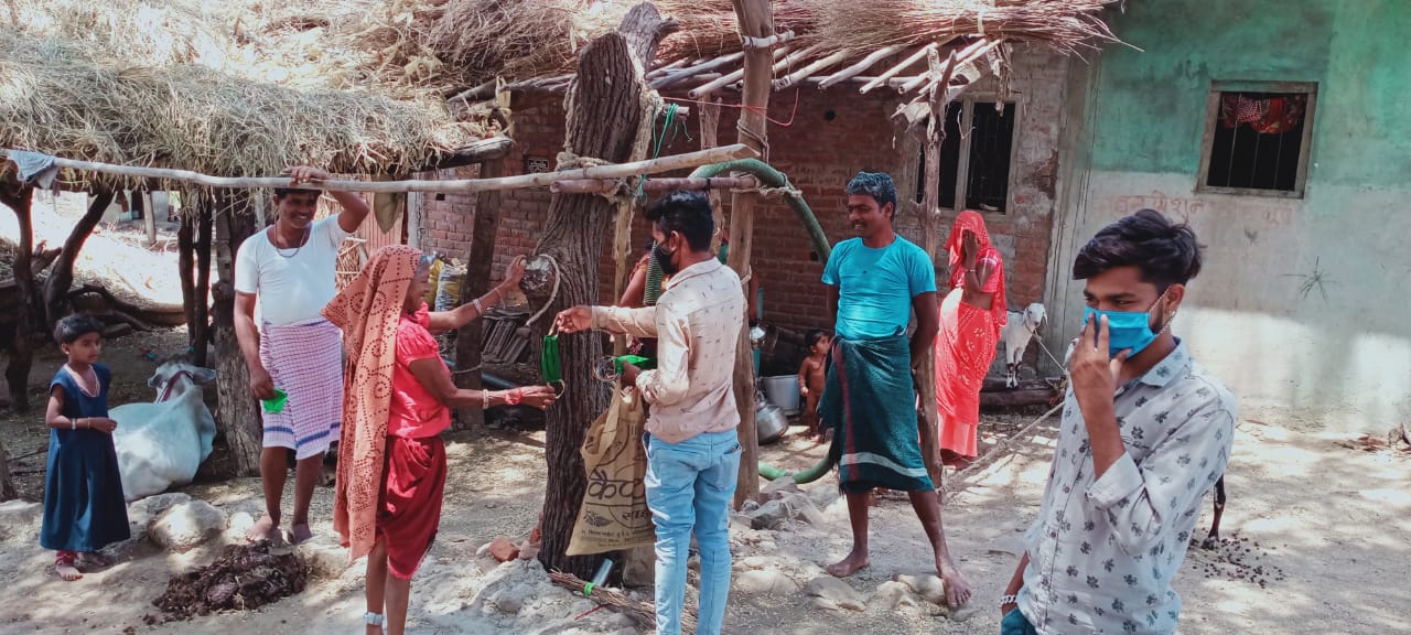नोवेल कोरोना वायरस के संक्रमण से बचने के लिए अभाविप-संघ के कार्यकर्ताओं ने ग्रामीणों को नसीहत देते हुए मास्क किए वितरित