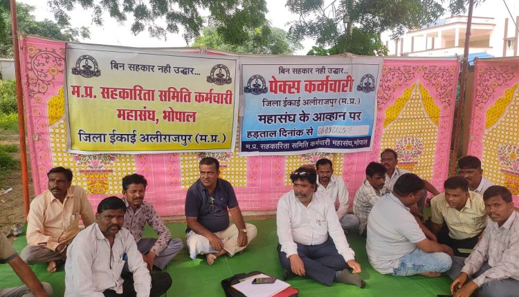 आलीराजपुर। प्रदेशभर के 55000 से अधिक सहकारीता समिति कर्मचारी सहित सार्वजनिक वितरण प्रणाली (पी.डी.एस.) के विक्रेता दिनांक  8.9.2025 से अनिश्चितकालीन हड़ताल पर चले गए हैं “मध्य प्रदेश सहकारिता समिति कर्मचारी महासंघ भोपाल” के बेनर तले अलीराजपुर जिले के भी सहकारिता कर्मचारीगण अनिश्चितकालीन हड़ताल में शामिल होकर कलेक्टर कार्यालय परिषद आलीराजपुर में धरने पर बैठ गए। नारेबाजी करते हुए सरकार के खिलाफ वादा खिलाफी का आरोप लगा रहा है।