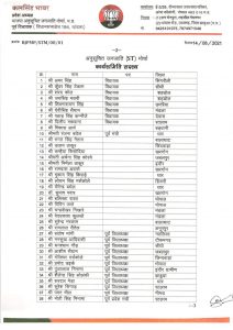 भाजपा अनुसूचित जनजाति मोर्च की प्रदेश स्तरीय कार्यकारिणी की घोषणा प्रदेश अध्यक्ष कलसिंह भाबर द्वारा कर दी गई, जिसमें 7 प्रदेश उपाध्यक्ष, 2 प्रदेश महामंत्री, 7 प्रदेश मंत्री समेत कोषाध्यक्ष, कार्यालय मंत्री, मीडिया प्रभारी मनोनीत किये गये, जिनकी सूची इस प्रकार है-