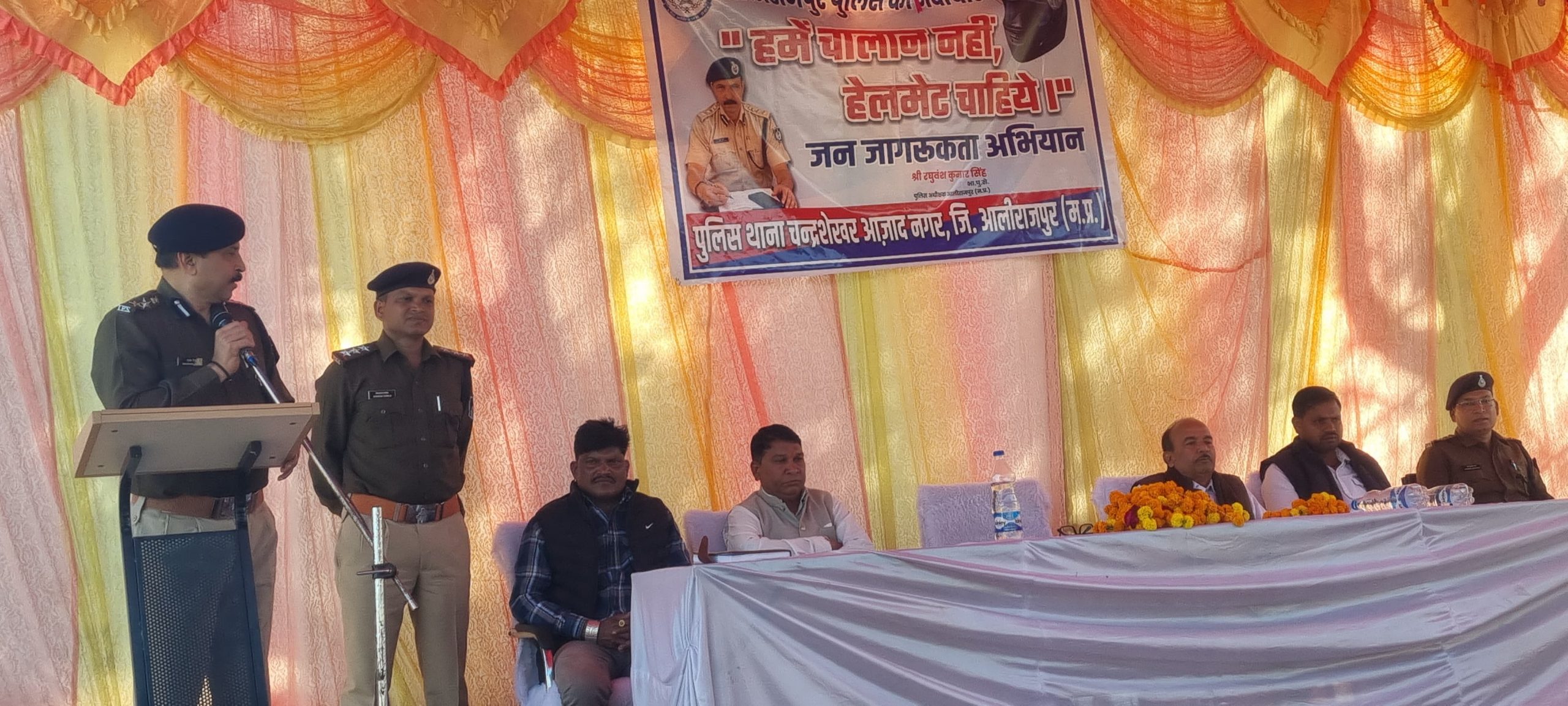 एसपी रघुवंस सिंह ने कहा के जब बाइक से गिरते हैं आपस में वाहन टकरा जाती है तो एक्सिडेंट में 60 प्रतिशत लोगों की मौत हो जाती है। यदी सिर की चोट को बचाया जाए तो 40 प्रतिशत मौत का आंकड़ा कम हो सकता है । साथ ही एसपी ने कहा की हमें आगे से डाट पढ़ रही है कि चालानी कार्रवाई कम हो रही है तो मेने कहा कि मेने जिले में चालान नहीं चाहिए अभियान चला रखा है । हमें चालान नहीं हेलमेट चाहिए अभियान जिसके चलते चालान कम बनने की बात कही । साथ ही आम नागरिक से कहा की जब आप लोग घर ने निकलते हैं तो परिवार घर लोटने का इंतजार करते हैं । ऐसे दुर्घटना की सुचना मिलती है तो उनका दिल दुःखी होता है आपकी एक चूक हेलमेट ना लगाने की परिवार को परेशानी में डाल देती है । माधुसिंह डावर ने कहा की आज हमारे बीच में पुलिस कप्तान आये है लेकिन आज पुलिस विभाग हमारी सुरक्षा करती है उसका कर्तव्य है । लेकिन जानमाल की सुरक्षा होती है परन्तु आज पुलिस अधीक्षक हमारे जीवन की सुरक्षा करने के लिए पुरे जिले में एक अभियान चला रखा है हमें चालान नहीं हेलमेट चाहिए आज कोई विभाग नहीं चाहेंगा की विभाग की इनकम नहीं हो और चालानी कार्रवाई करेंगे तो इन्दौर से भोपाल तक आलीराजपुर पुलिस की वाह वाह करेंगे । परन्तु आज पुलिस विभाग को इनकम की परवाह नहीं है हर इन्सान की जान कि परवाह है। जिसके चलते आज बरझर में हेलमेंट वितरण का आयोजन पुलिस अधीक्षक ने रखा है गाम सरपंच हिमसिग बारीया , एसडीओपी रविन्द्र राठी ने भी सम्बोधित किया।