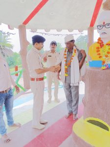 जिसके तहत बरझर पुलिस चौकी प्रभारी शिवा तोमर ने पुलिस परिवार की और से स्टाफ सहित स्वतंत्रता संग्राम सेनानी पर्थी दादा की जन्म स्थली पहुंच कर पर्थी दादा की प्रतिमा पर पुष्प अर्पित कर श्रद्धा सुमन अर्पित कर उनके परिवार के पुत्र वीरसिह पर्थी को शाल श्रीफल भेंट कर सम्मानित किया। इस अवसर पर रिंगोल सरपंच महेश भुरिया चौकी प्रभारी शिवा तोमर आरक्षक दिनेश मुवेल सियाराम डुडवे व ग्रामीण मौजूद रहे।