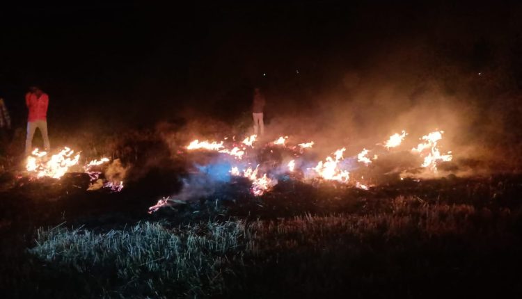 खेत में आग लगने से जल गए किसानों के गेहूं के पुले
