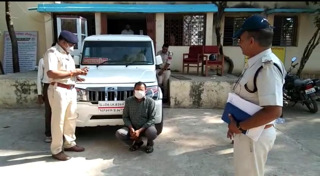 जिले में अवैध शराब परिवहन को लेकर एसपी विपुल श्रीवास्तव ने गंभीरता से संज्ञान में में लेते हुए संबंधित पुलिस अधिकारियों को दिशा निर्देश जारी किए जिसके बाद एएसपी बिट्टु सहगल एवं एसडीओपी दिलीपसिंह बिलवाल के मार्गदर्शन में एक टीम गठित की गई। इस टीम में नानपुर थाना प्रभारी मोहनसिंह डावर के नेतृत्व में सउनि समीनर खान, प्रआर विजय, आर मनोज, आर बलवंत, आर राकेश की टीम द्वारा अपने अपने मुखबिर तंत्र को सक्रिय किया गया। जिसके बाद दिनांक 25 अक्टूबर को मुखबिर से सूचना मिली कि एक सफेद रंग की बोलेरो एमपी 09 डब्ल्यू 0672 में एक व्यक्ति कुक्षी की ओर से अवैध शराब लेकर गुजरात की तरफ जाएगा। मुखबिर की सूचना पर टीम ने योजना बनाकर सफेद रंग की उक्त बोलेरो जीप को पकड़ा तथा जिसमें 20 पेटी माउंट बियर कीमत 48 हजार रुपए होना पाया व तलाशी के दौरान एक न्यायाधीश लिखी नेम प्लेट व जीजे 06 एलके 8269 की नंबर प्लेट भी मिली। बोलेरो जीप के ड्राइवर से नाम पूछने पर उसने अपना नाम रामबिहारी पिता मेघसिंह भदौरिया आयु 52 वर्ष निवासी तपेश्वरी बाग रेडिसन कॉलोनी थाना खजराना होना बताया व शराब के संबंध में किसी प्रकार का लाइसेंस नहीं बताया, जिस पर आबकारी अधिनियम 1915 की धारा 34(2), 36, 46 के अंतर्गत दंडनीय पाया।