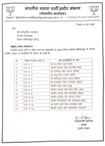 भाजपा ने जिला पंचायत सदस्य के प्रत्याशियों की घोषणा की