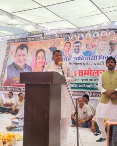 आदिवासी विकास परिषद के प्रदेश उपाध्यक्ष महेश पटेल आदिवासी विकास परिषद कार्यकर्ता सम्मेलन को संबोधित करते हुए कहा की मध्यप्रदेश आदिवासी विकास परिषद सामाजिक संगठन है आदिवासियों की हक जल जंगल की लड़ाई लड़ने के लिए बनी है मेरी शासन प्रशासन से माँग है की (1)आदिवासियो का भी धर्म कोड लागू होना चाहिए,