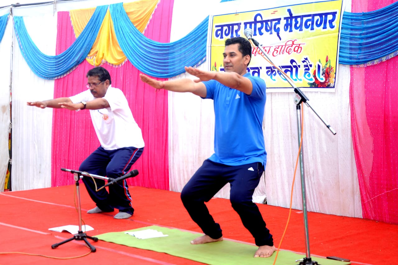 दुनियाभर के साथ झाबुआ के मेघनगर में भी योग दिवस मनाया गया। योग से शारीरिक और मानसिक स्वास्थ्य तथा आध्यात्मिक संतोष के विकास का अनुपम अवसर मिलता है।अंतर्राष्ट्रीय योग दिवस में सभी ने योग को अपनी दिनचर्या का हिस्सा बनाने का संकल्प लिया। शुक्रवार को सुबह मेघनगर शासकीय बालक हाई सेकेंडरी स्कूल के प्रांगण में योग के फायदों के बारे में जागरूकता बढ़ाने के लिये योग प्रशिक्षण शिविर, योग प्रतियोगिता और सामूहिक योगाभ्यास किया गया।
